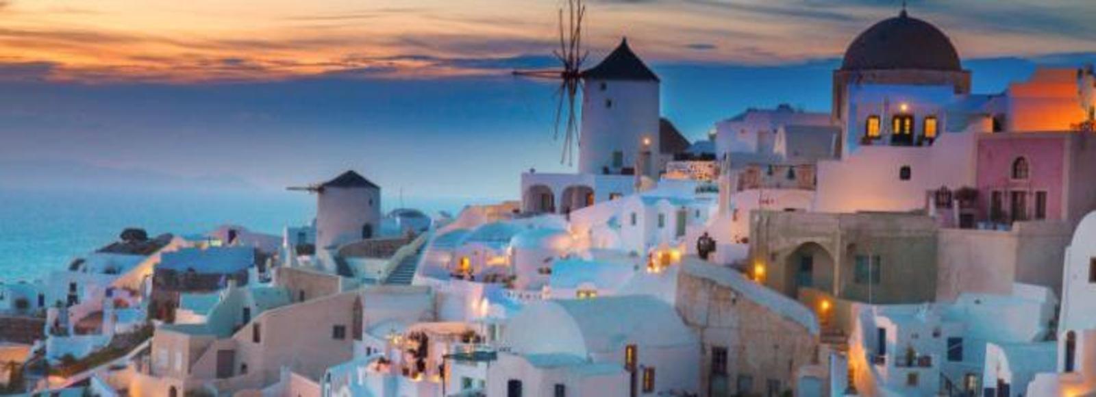 Help us 'cheers' to our arrival in Santorini!