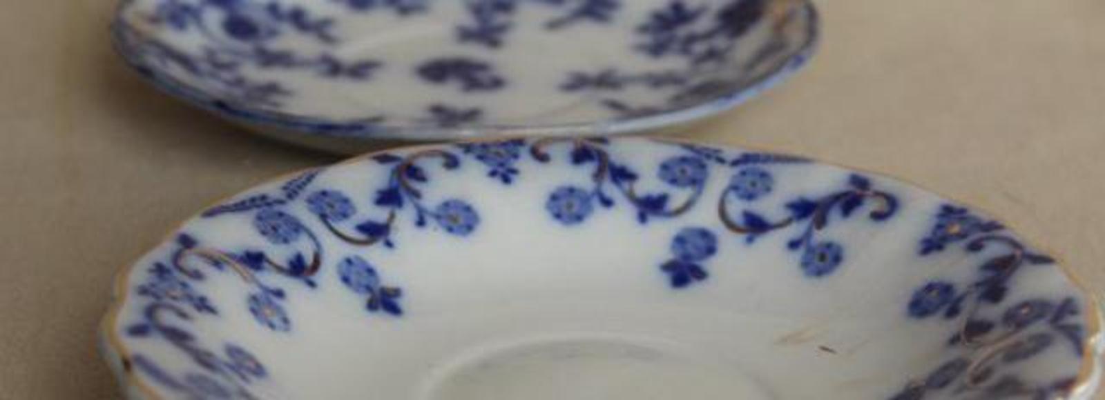 Perfect for breakfast or tea: an everyday cup, saucer, and plate --Wood's Ware, circa 1940s, in 'Beryl' or 'Jasmine.'