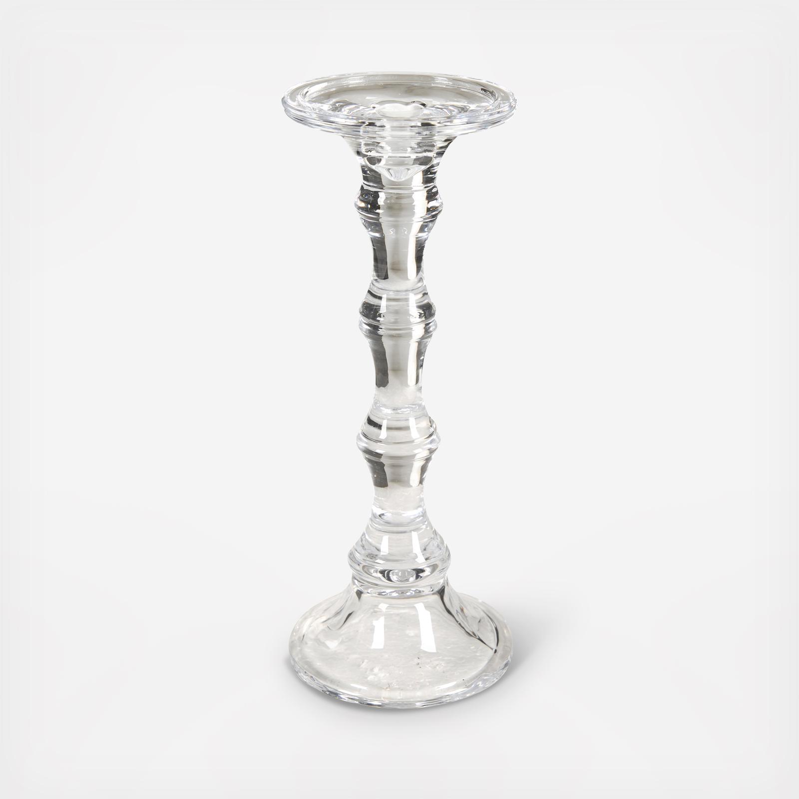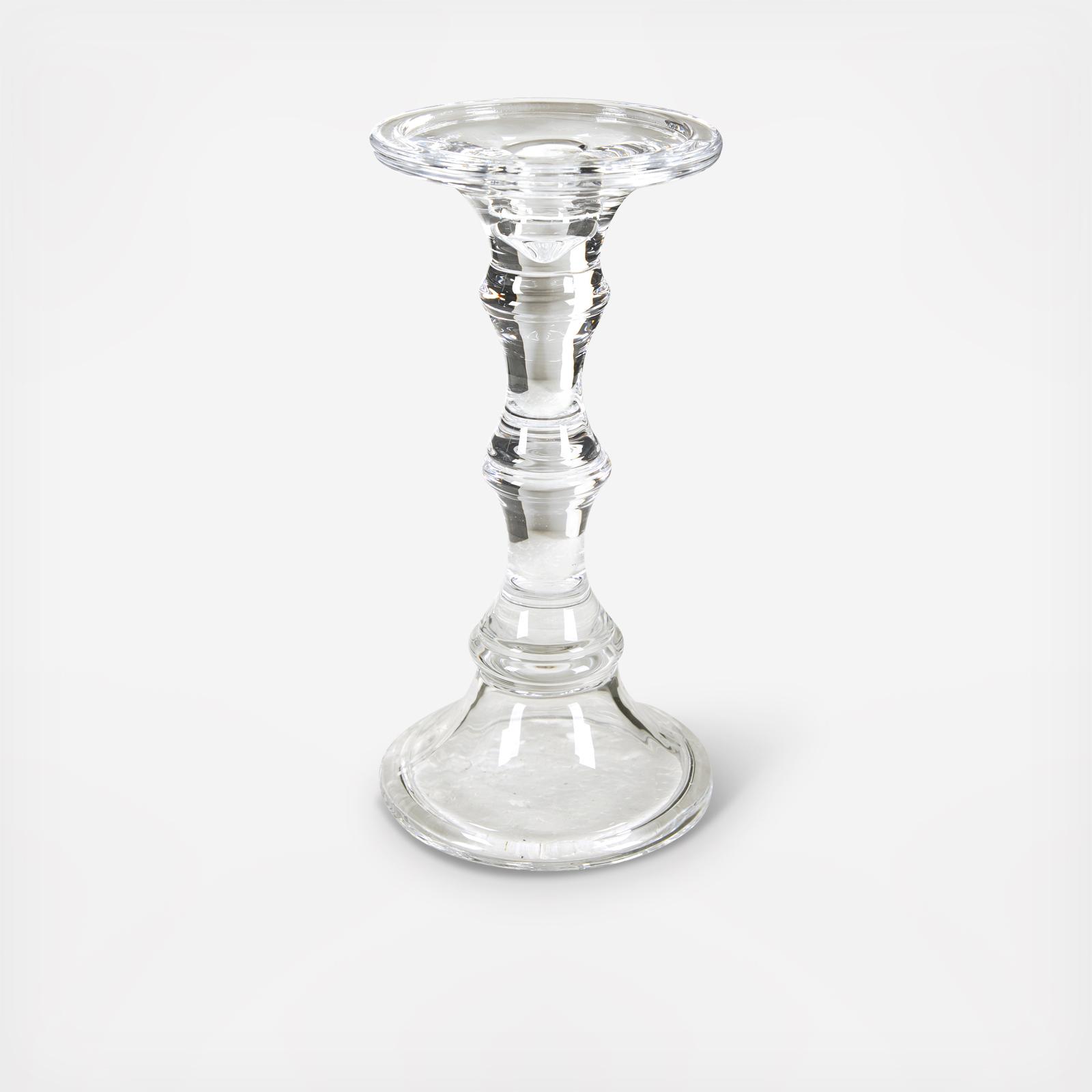 With elegant simplicity, the Audrey Glass Candlestick brings stunning height and a delicate sparkle to a variety of settings. Place alone on a side table for a modern, minimalist look or create an elegant by combining multiple candlesticks with flowers and greenery. Its stunning simplicity gives this candlestick the versatility to complement any room decor.