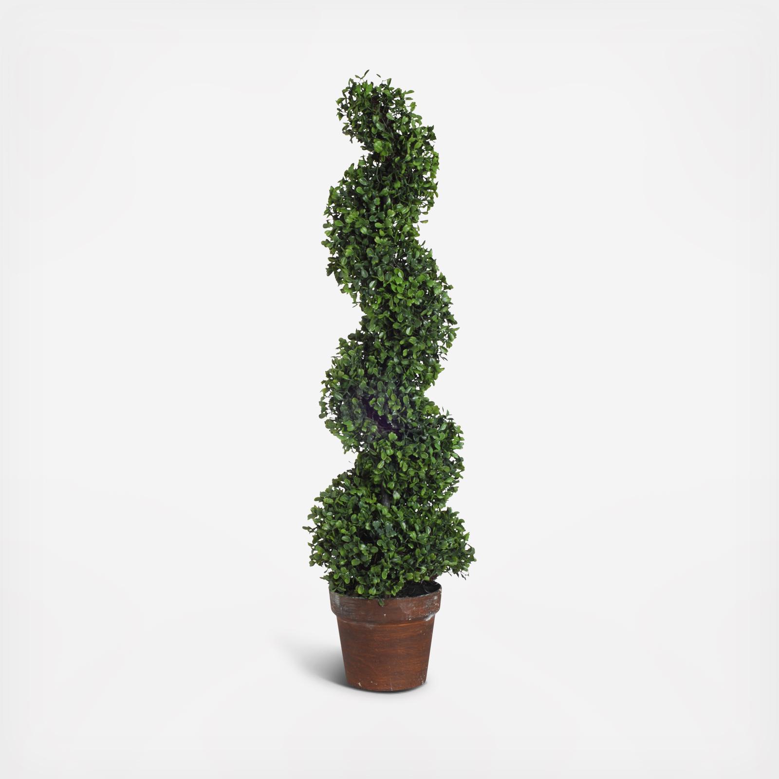 Add a lush, sophisticated touch of nature to your home with the Potted Spiral Faux Boxwood. With an impressively real look, this boxwood makes a striking accent piece next to a grand front door, in the corner of a luxurious master bathroom, or in a garden sunroom. The worry-free beauty of this faux boxwood makes it ideal for a variety of spaces.