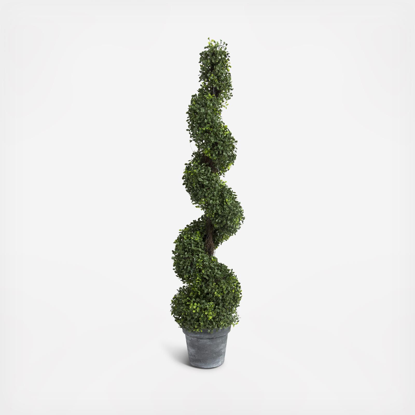 Featuring the vibrant green hues of a real boxwood, this Spiral Boxwood Potted Topiary offers the style and texture of a real plant combined with the ease of faux floral. With its elegant spiral and impressive size, this faux boxwood fits perfectly in an office foyer or on a grand front porch. The timeless beauty of the boxwood makes an attractive accent that enhances any space and any style.