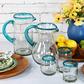Our Artisan Glassware Straight Pitcher is a sculptural sensation, ready to bring sustainable style to your table. This is handcrafted in Mexico, boasting a distinctive that beautifully contrasts with the clear body. Made from recycled glass, it represents our commitment to environmentally friendly craftsmanship. It not only serves your favorite beverages but does so with unmatched elegance, transforming every pour into a enchanting experience.