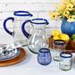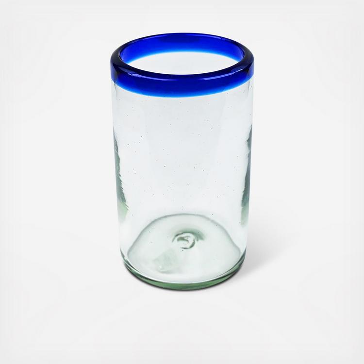 Capture the allure of the ocean in your drinkware collection with our Artisan Glassware Tumbler, Set of 4. Expertly handcrafted by Mexican artisans, this tumbler marries clear recycled glass with a bright rim, transporting you to a peaceful beach with every sip you take. This unique tumbler serves as a daily reminder of our commitment to environmentally-friendly practices and time-honored craftsmanship. Add a splash of vibrant charm to your everyday life with this Artisan Glassware Tumbler.