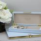 Coming in a 4x9 these stunning high gloss boxes will be rimmed in gold plate. With a one sided hinge these boxes are perfect for jewellery and accessories.