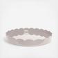 Round Large Scallop Tray is finished in 20 coast of high gloss lacquer, hand polished between each coat. Base painted with rubber dots and embossed with logo. Beautifully Gift Boxed.