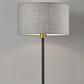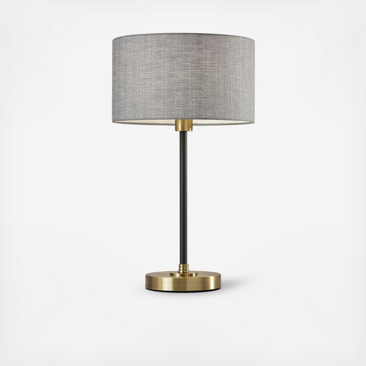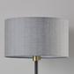 A classic, mid-century look, the Bergen Table Lamp is a modern light that creates a warm glow around the room. Black and antique brass metals are mixed to create a style that can fit into many settings. At a 24” total height, the Bergen Table Lamp is perfect for next to the sofa or the bedside. A soft, grey fabric shade reveals a delicate texture when lit. The cord is clear and inconspicuous.