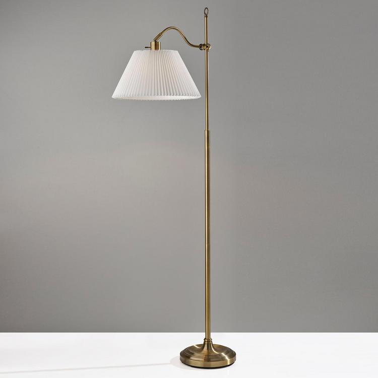 Introducing the Derby Floor Lamp, a timeless and versatile lighting masterpiece that seamlessly melds classic design with modern functionality. This floor lamp showcases an Antique Brass finish that infuses vintage charm and sophistication into your decor. Its pleated fabric shade adds an element of elegance and warmth, creating a soft and inviting ambiance. Standing tall at 64.75 inches, the Derby Floor Lamp is a statement piece that offers both focused illumination and style, making it an ideal addition to your living space.