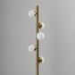 The Doppler LED Tree Lamp has mid-century modern inspiration. Five white opal glass globe shades are scattered along an antique brass pole. A square black marble base serves as a decorative accent as well as a heavy weight to keep this lamp sturdy and safe. This floor lamp ships with five G9 replaceable LED bulbs that give off a total of 1,000 lumens of warm, ambient lighting. The sleek look is finished off with a black fabric covered cord. Bulbs are included. This lamp is smart outlet compatible.