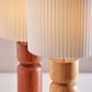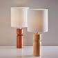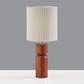 With elegant lines and a wood base in a rich, beautiful finish, the James table lamp imbues any space with a modern-meets-rustic aesthetic. The wood base is topped by a contrasting metal pole leading to an elegant pleated fabric drum shade. Operated by a rotary socket switch to easily turn the 100W bulb on or off, the table lamp is also powered by a clear 5' cord.