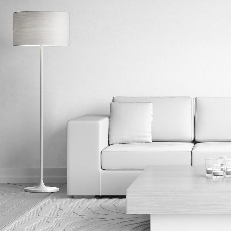 An interpretation of Scandinavian design, the Oslo floor lamp features a modified tulip-styled base and body and is topped with a hardback drum shade of white Japanese paper. The horizontal striped paper adds subtle pattern.