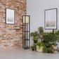 Have it all with style and multi-function. The Wright shelf floor lamp features a wood finished open box frame with two additional display/storage shelves, making it a handy addition to the living room, den, office, or bedroom. The lamp has on/off functionality with a metal ball accented pull chain switch. This lamp has a clear cord and is smart outlet compatible. The lamp comes with clear wire clips for a clean look.