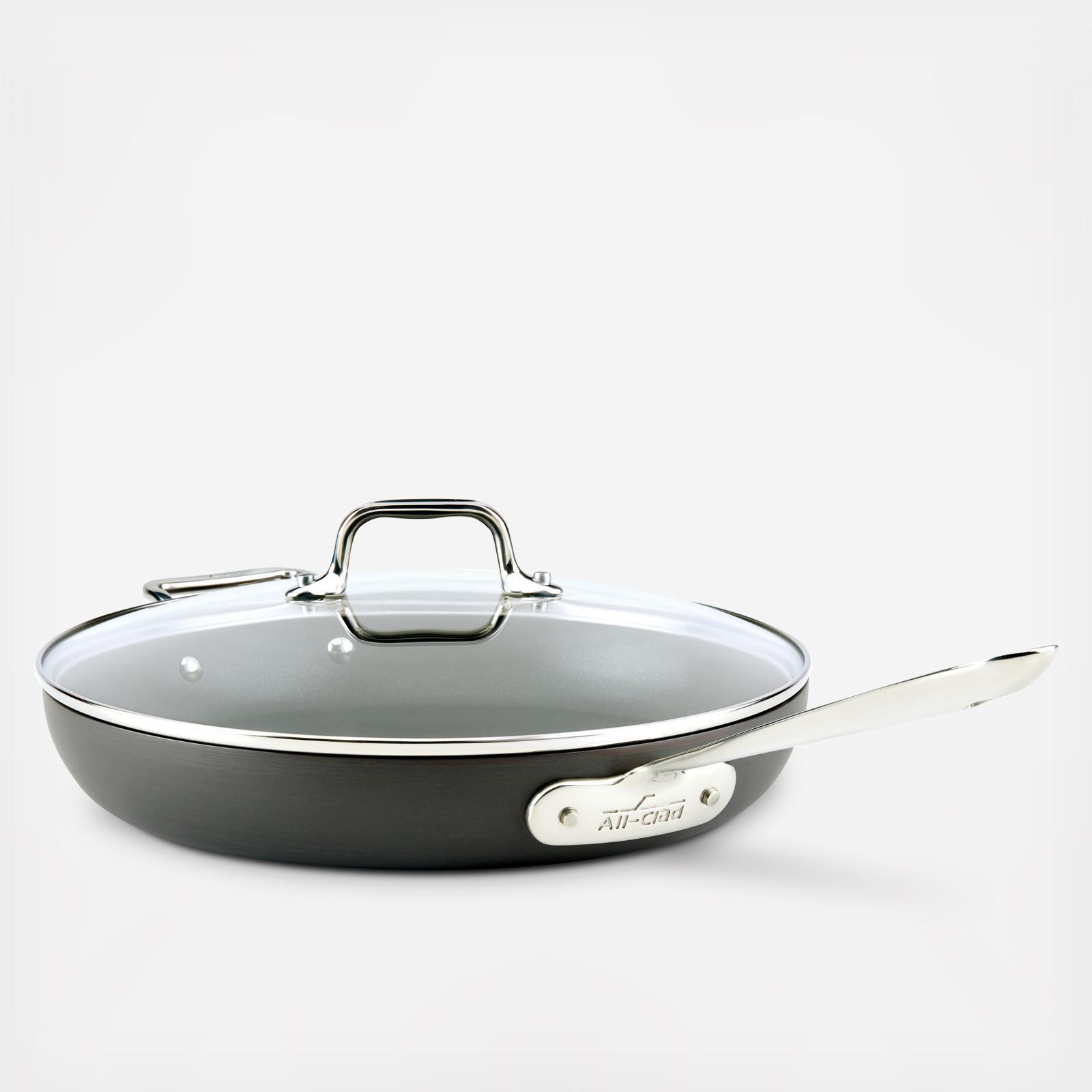 A true kitchen staple, the All-Clad Hard Anodized E7859664 12 inch nonstick fry pan with lid is ideal for searing, browning, and pan-frying everything from eggs to meats. The fry pan features a flat bottom and flared sides that make tossing foods effortless and allow for easy turning with a spatula. The All-Clad frying pan is great for cooking at higher heat with oils to develop foods with full rich flavor, color, and crisp texture. Use the lid to lock in moisture and heat after browning or searing to cook meats thoroughly on the stovetop or in the oven. With HA1 Hard Anodized cookware, you can experience the renowned quality of All-Clad and the ultimate convenience of nonstick. The All-Clad cookware’s three layers of PFOA-free nonstick coating ensure effortless food release and make cleanup a breeze. Even more, Hard Anodized nonstick cookware offers dishwasher-safe convenience, induction compatibility, and warp-resistant strength. Discover what it means to cook with All-Clad.