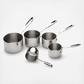Crafted to look like mini saucepans, this measuring cup set is made of high quality stainless steel, with a polished exterior and brushed interior finish. Signature All-Clad riveted handles feature laser-etched logo and capacity markings.
