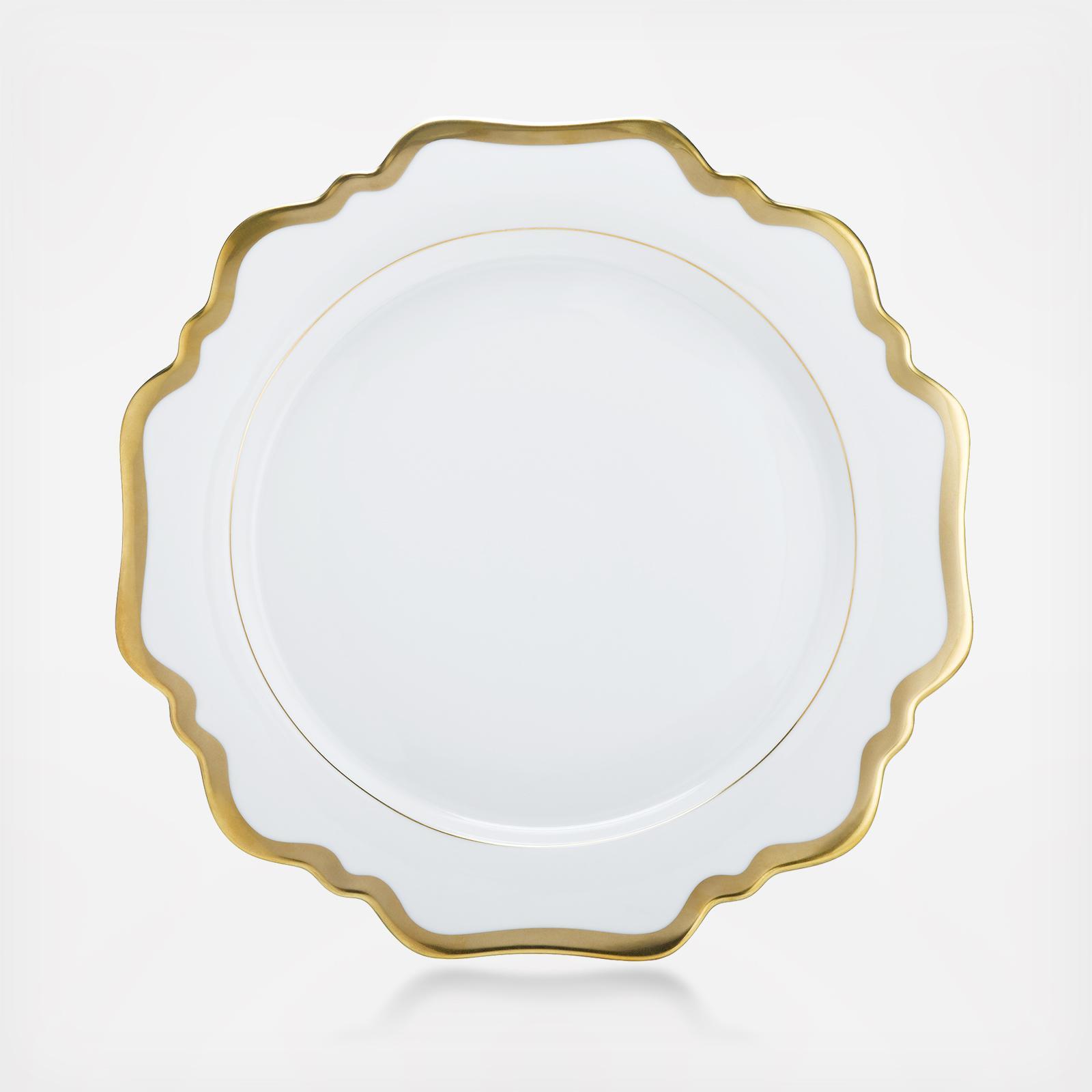 Anna Weatherley offers handpainted designs for tableware, dinnerware, and home goods from Hungary. The Simply Anna Antique pattern is white with a striking hand-painted gold rim.