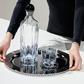 Presenting the Striations Round Serving Tray, where modern allure meets classic sophistication. Crafted from durable stainless steel, its sleek design is inspired by the graceful lines of nature, echoing the serene lines of beams of sunlight through trees and glacial landscapes in its intricate patterns. Elevate your entertaining experience with this versatile tray, perfect for serving food, drinks, or displaying a decanter and glasses, adding an elegant touch to any occasion with its timeless charm.