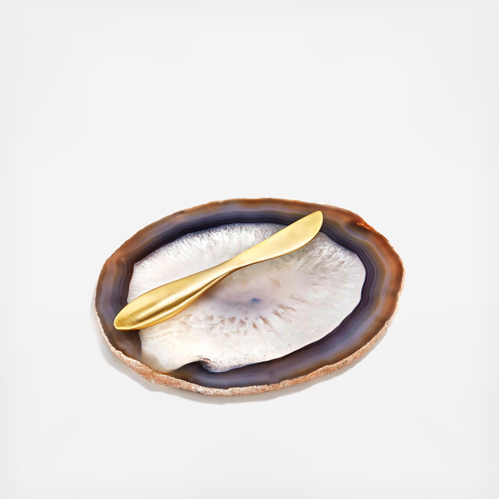 Playful and giftable, this set comprised of bright colors and finishes doesn’t take itself too seriously. From hors d’oeuvres to pats of butter, this little dishes and spreader will be the serving hit of the party.