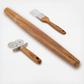 Prep the perfect pastas and pastries using the classic European styling of the Anolon Tools and Gadgets 3-Piece Prep Set. Natural teak wood handles are varnished to highlight the distinctive wood grain, and the versatile dual-wheeled pasta and pastry cutter has both straight and scalloped stainless steel blades for cutting puff pastries and unique pasta shapes and profiles from flat ravioli sheets to lasagnas and more. The pastry brush features nylon bristles that won't clump or retain odors, making it ideal for dustings, egg-washes, and basting. Heat safe to 500° F, the prep set should be hand washed only, and is the ideal accompaniment to other Anolon kitchenware collections and accessories. This product contains (Este producto contiene) Aluminum. For more information on chemicals in this product, visit (Para obtener mas informacion sobre productos quimicos en este producto, visite) anolon.com/pages/product-disclosures.