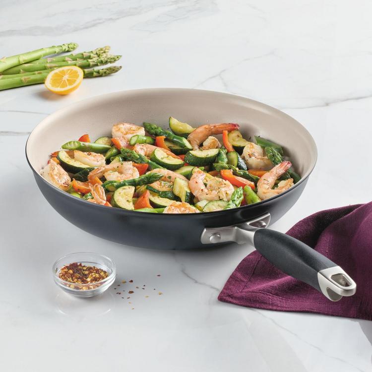 Cook with confidence and elevate every meal with Anolon Advanced Ceramic. As the inventors of pairing hard-anodized pots and pans with durable nonstick surfaces, Anolon is one of the most trusted names in nonstick, so you know our premium nonstick ceramic delivers the same quality, performance, and deeply satisfying experience designed to enhance every step of the cooking process. Made without PFAS, PFOA, lead, and cadmium*, Anolon Advanced Ceramic is built to handle everything from searing and sauteing to boiling, braising, frying, and beyond - ready for whatever culinary journey your imagination takes you on, so you can slow down and savor every moment.