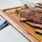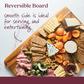 This versatile cutting, carving, serving, and presentation board features a modern, counter-friendly design that looks great on the table and works perfectly in the kitchen. Use the traditional trencher design to collect carving juices or flip the board over for a uniform, flat surface ideal for charcuterie or hors d'oeuvres presentations. Finished with a food-grade mineral oil to highlight the natural teak wood grain, this sturdy cutting board is a full thick, providing maximum durability to take on chopping, slicing, and dicing from chef knives, carving knives, cleaver knives, and more. Whether for presentation or for prep, get form and function and serve in style with this kitchen cutting board from Anolon Pantryware.