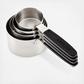 Take the guesswork out of cooking while keeping organized with this set of 4 magnetic measuring cups from Anolon. The four measuring cups in this set: 1/4 cup, 1/3 cup, 1/2 cup, and 1 cup - feature magnetic handles for compact, organized storage, with the cups stacking neatly and securely into each other. Constructed from rust-resistant stainless steel with long, nonslip silicone SureGrip® handles and embossed measurement marks that won’t fade, these measuring cups are durable, easy to use, and ideal for scooping into canisters and containers. Prep, cook, and bake with dependability and convenience thanks to the Anolon SureGrip® Magnetic Measuring Cup Set.