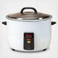 This convenient cooker's generous capacity perfectly cooks up to 60 cups of any variety of rice. It automatically senses when rice is done and switches to Keep-Warm for fresh rice all day. The durable body and heavy-duty stainless steel lid and aluminum cooking pot are designed for continuous use so you can count on batch after batch of flawless rice coming out of your kitchen.
