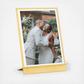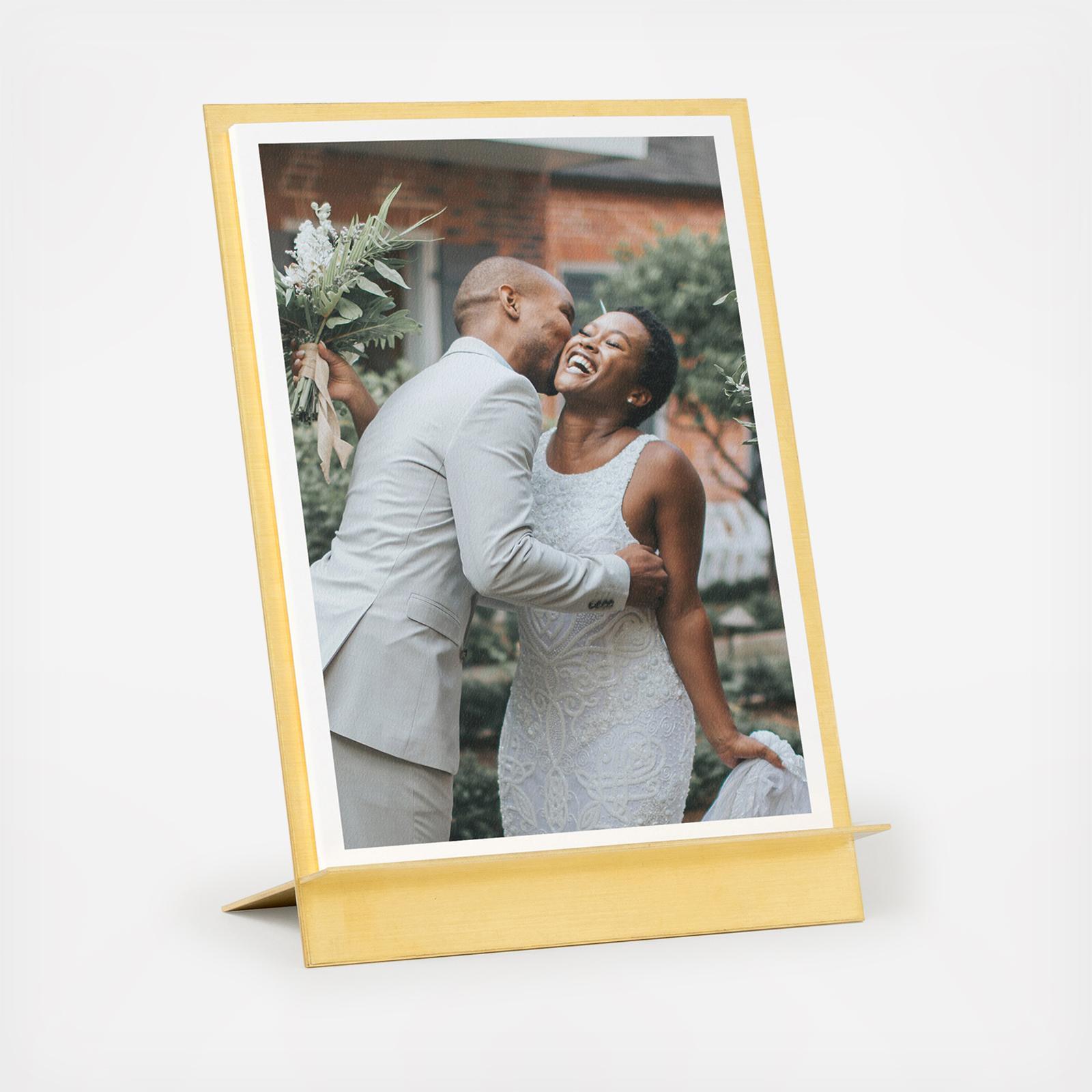 Print 12 of your favorite wedding photos to display in this sleek solid brass stand. The Brass Easel & Prints from Artifact Uprising is an artful gift for your family, wedding party, and anyone else who would love to relive your wedding day in print. Each couple will receive a unique gift code valid for a customizable Brass Easel & Prints to redeem at artifactuprising.com. Available nationally.
