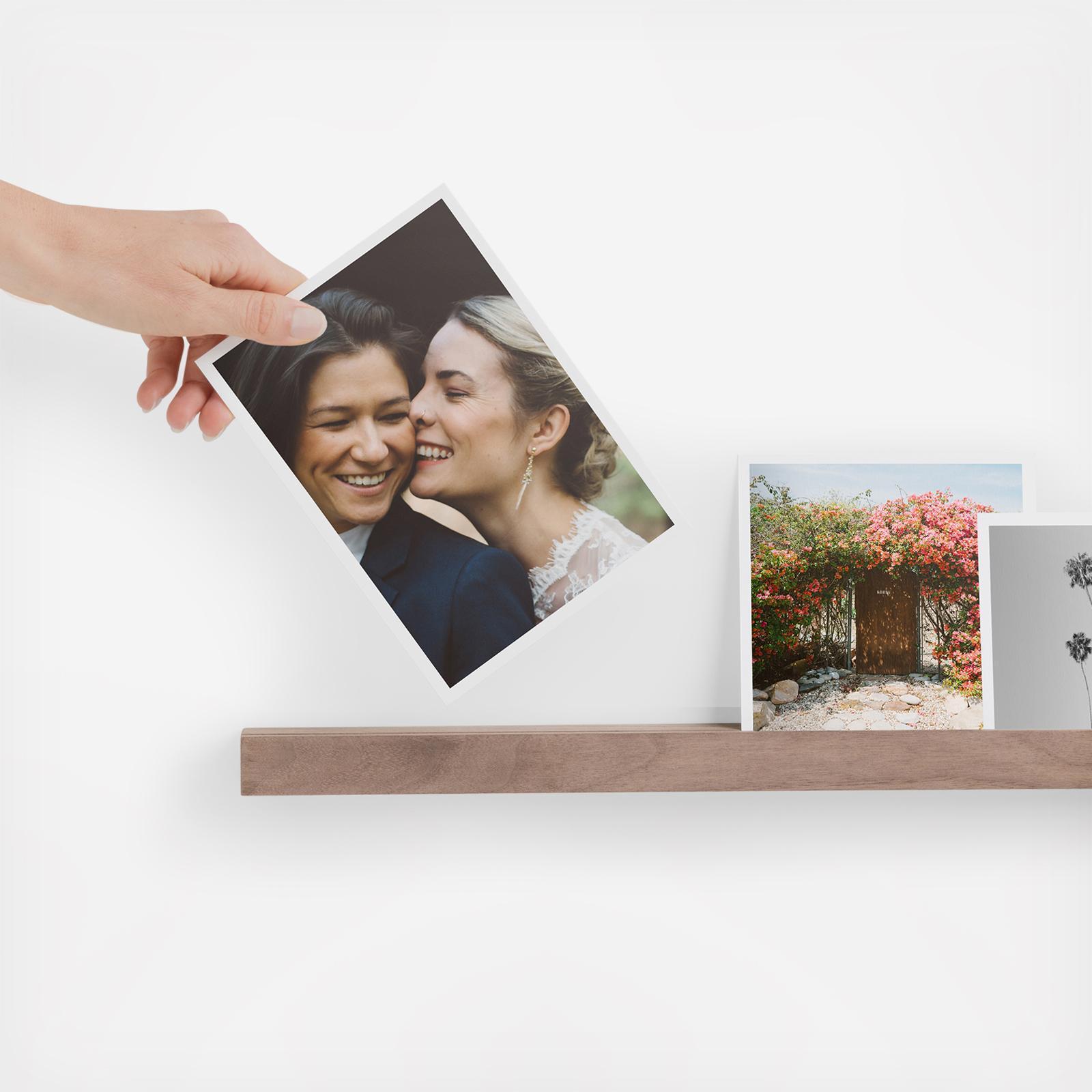 Crafted of solid walnut wood, the Wooden Photo Ledge from Artifact Uprising is an artful way to showcase wedding photos at home. Switch up your display as often as you’d like by interchanging the photo prints within the groove. Each couple will receive a unique gift code valid for a Wooden Photo Ledge to redeem at artifactuprising.com. Available nationally, prints not included.