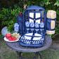 This Picnic at Ascot classic backpack has settings for four! This set contains a detachable wine holder and a thermal shield insulated food section to keep food and drink at the perfect temperature.