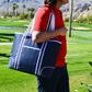 Cooler meets reusable market bag with this stylish, Thermal Shield insulated, with waterproof tote. Perfect for picnics, outdoor events and trips to your favorite farmer's market. There's a zippered main compartment and shoulder straps for easy carrying.