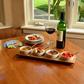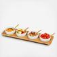 This high quality bamboo entertaining board incorporates four ceramic bowls for cheese, olives, and appetizers. Bowls are removable to refill or clean. An elegant way to serve a variety of whipped cheeses, spreads, and condiments.