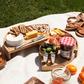 A Picnic at Ascot original and exclusive, the Vienna Cheese Board Set is a bamboo board that amazingly transforms from a 9.5 inch wedge to a 17 inch diameter circular, multi-level cheese board with three stainless steel tools in a pull out drawer. This ingenious high quality board will impress guests when entertaining, and is a unique and special upscale gift.