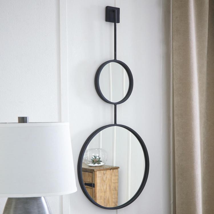 Contemporary style is stacking up beautifully in this metal framed accent mirror with stacked circle design. Whether gracing an entryway or brightening up a hallway or vanity area, what a simply striking way to round out a room.