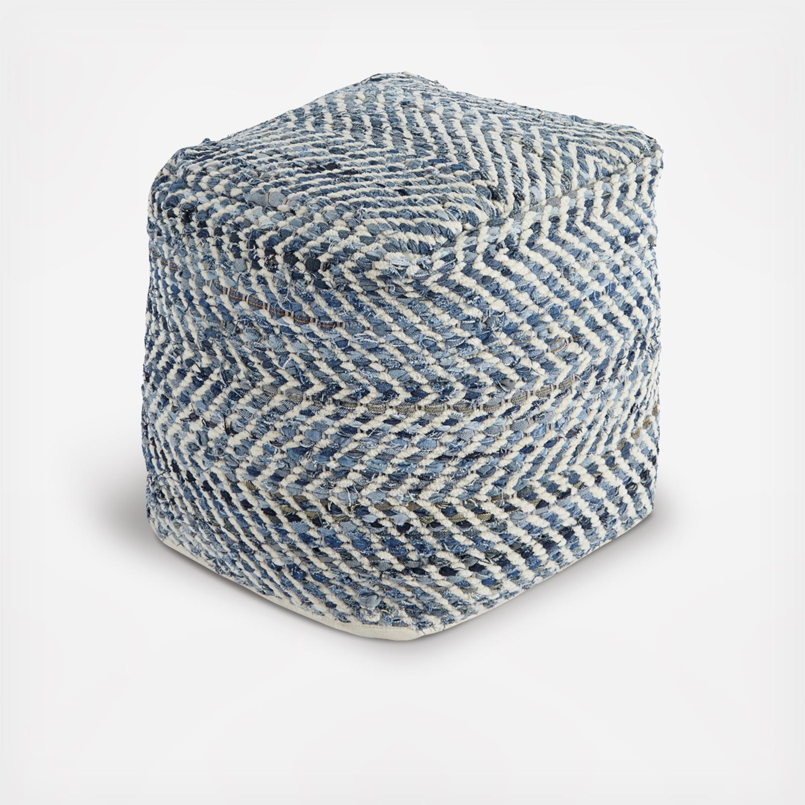 This darling hand made pouf is queen of the blue jeans. Woven from strips of denim, the square shape will be a favorite go-to seat or ottoman. It’s also sturdy enough to hold a serving tray.