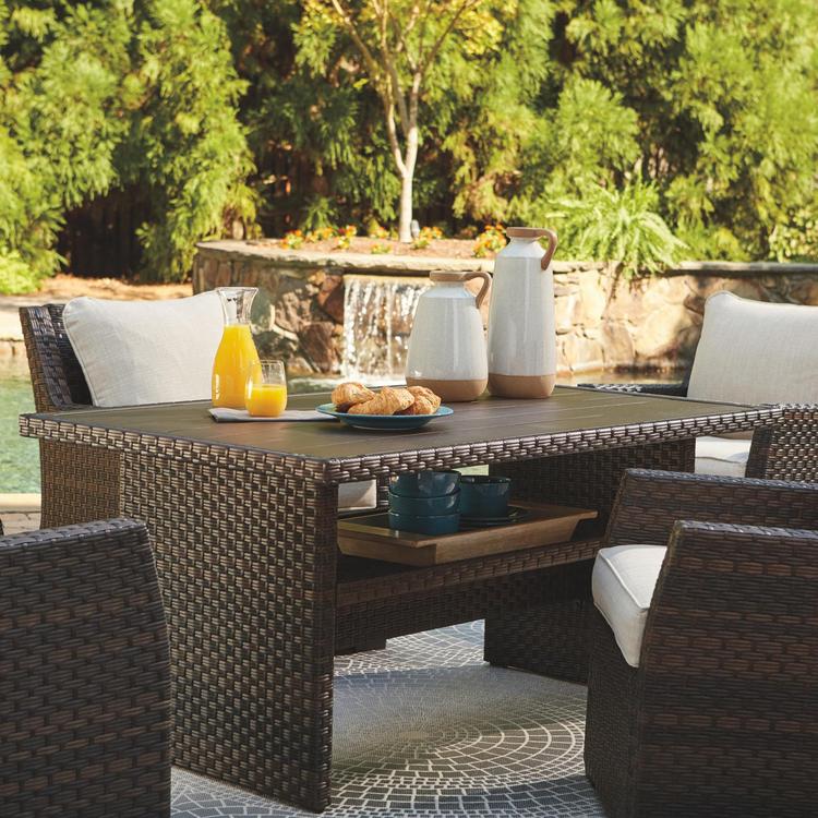 Al fresco living is easy to love with the Easy Isle multi-use table. Its raised height makes it perfect for everything from mealtime, game time, a round of cards or a round of drinks. Resin wicker over a rust-free aluminum frame lends an upscale aesthetic that’s downright durable. Aluminum top is conveniently water and stain resistant.