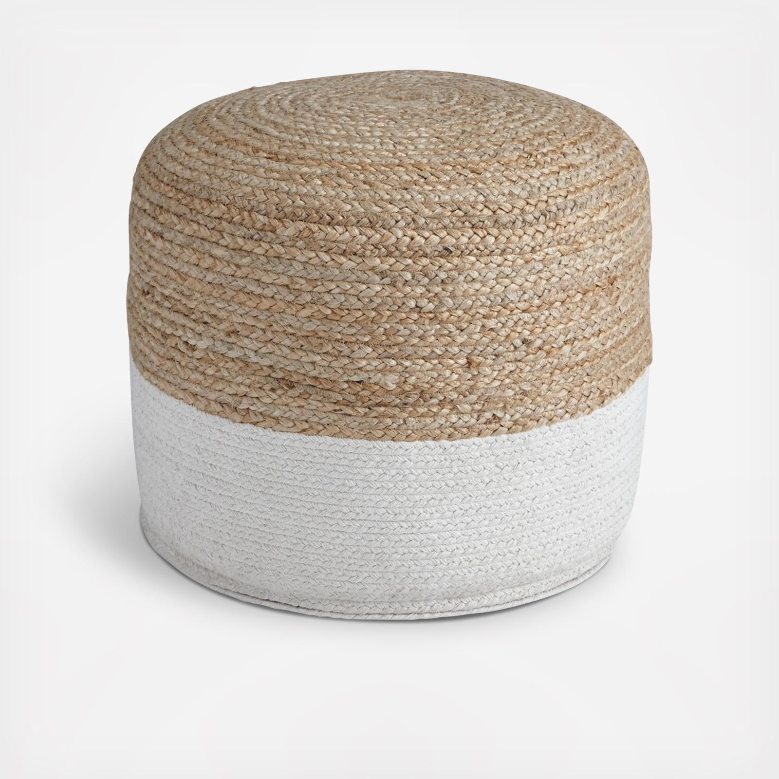 Natural beauty is always in vogue, and this pouf proves it. Braided design in natural jute hue and white is simple yet fresh. Stylish stitching and dense filling hold the look together.