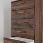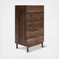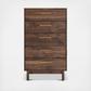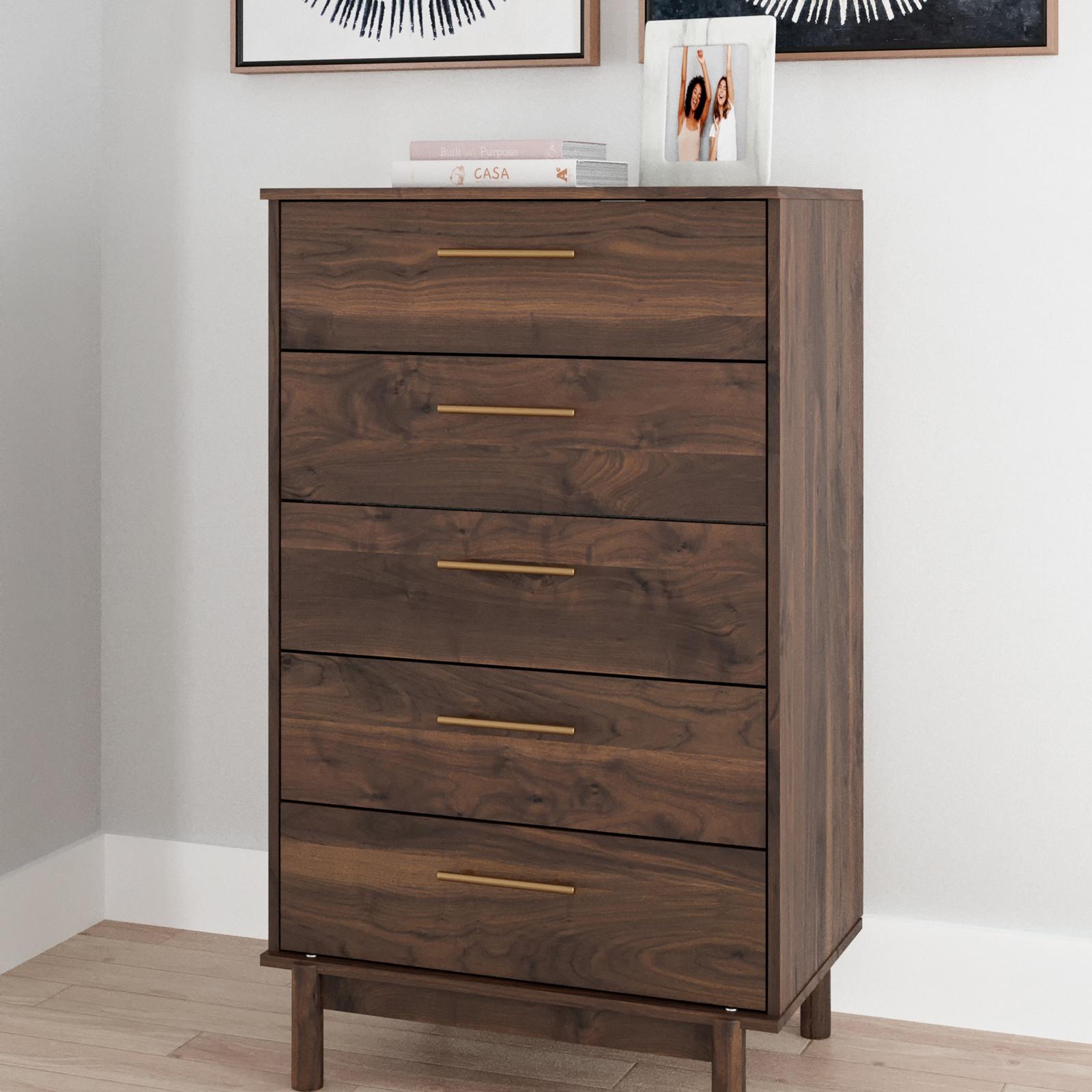 At the intersection of industrial cool and chic sophistication, you’ll find the Calverson chest of drawers. With a rich brown finish over replicated walnut wood grain, paired with burnished goldtone handles, it offers an authentic touch that plays well any way you style it. Simple and elegant in its design, this piece keeps your home decor grounded while elevating your modern style.
