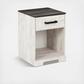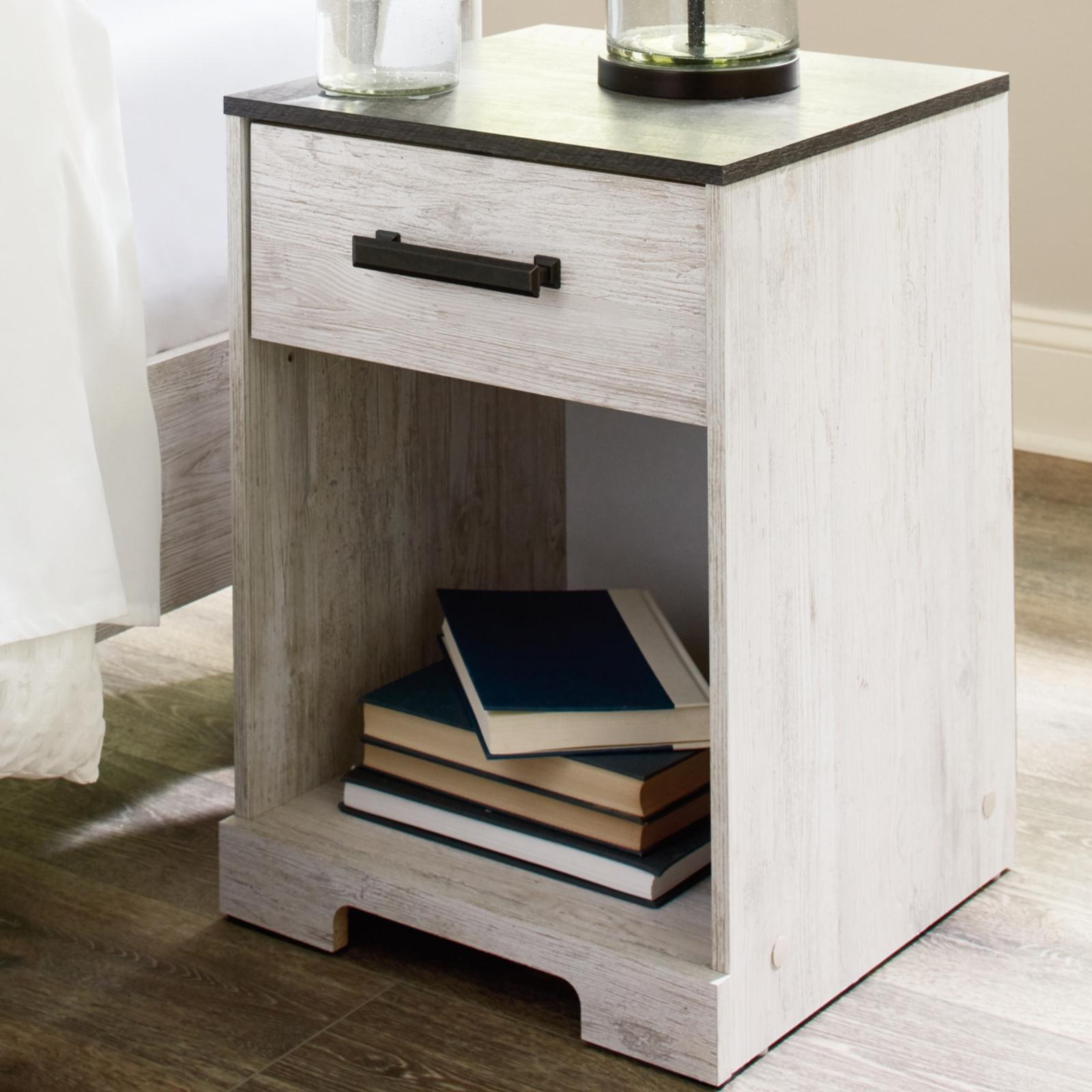 Give provincial a new meaning with the chic look of the Shawburn one-drawer nightstand. The two-tone finish keeps this piece light and fresh while the warm pewter-tone hardware adds an industrial touch. The open cubby provides display space or accommodates a storage bin to add a delightfully homespun charm to your space.