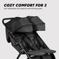 The City Tour 2-Double Stroller makes getting around town with two kids easier than ever. Designed to fit through a standard doorway, this lightweight double stroller also folds compactly for easy transportation and storage. This fully featured stroller includes 2 comfortable padded seats with multiple recline positions and adjustable calf supports, as well as UV 50+ canopies with extension panels and peekaboo windows. The City Tour 2-Double Stroller can be easily customized with add-on accessories (sold separately), so you're equipped to carry on with your day, wherever it may lead you.