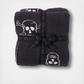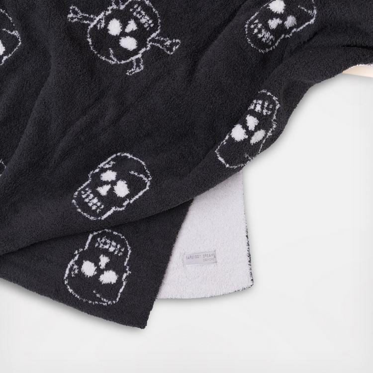 Their signature plush throw gets an edgy update with this cozy and cool two tone jacquard knit skull pattern.