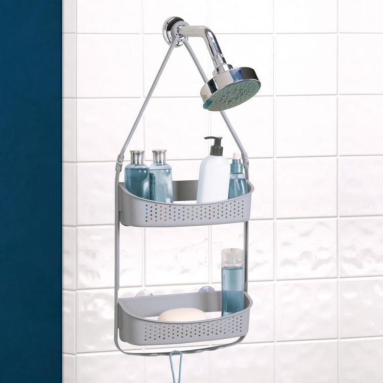 This Shower Caddy helps keep your personal bathroom items handy when needed. Its convertible design allows you to hand the caddy over the shower head or hanging from the shower pole. With it's two tier design and accessory hooks, there is plenty of room for your items. Durable construction and rust resistant self draining material makes it long lasting and reliable. Extra wide shelves adds to storage space in the shower.
