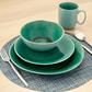 Set the table with rich color and elegant design using this stunning everyday dinnerware set. This 16 piece set is perfect for entertaining family and friends. The stunning crackle glaze is complemented by its durable stoneware composition.