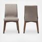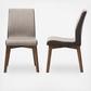 Surround your dining table with the elegant looks and timeless hue of the upholstered Contemporary Dining Chair. Constructed of solid rubberwood for a strong and sturdy frame with lasting good looks, this set is upholstered in two-tone brown and dark brown polyester fabric for a sumptuous yet resilient fabric quality. Dark walnut finished wood legs matching with two tone light brown and dark brown create a timeless palette to complement a range of interior styles from Scandinavian to urban style. Assembly required.
