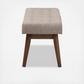 Channel classic good looks in your aesthetic with the handsome walnut wood and fabric of the Classic Bench. Constructed of solid rubberwood frame, this padded bench is upholstered in beige polyester fabric for a resilient surface with luxurious comfort and lasting good looks. Design is ideal for your living area or entrance as well as waiting rooms and offices. Dark walnut tone on the frame complements the cool light grey upholstery for a demure, mid-century modern-inspired palette in your space. Button-tufting design instils an on-trend sought after look in your living space. Assembly required.