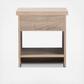 Complement your bedroom with clever balance of colors and ample storage with this modern nightstand. Featuring modern and minimalist design, the nightstand is constructed of engineered wood in oak and grey two-tone finishing, creating a contrast but soothing effect. The drawer and the open shelf are perfect for storing your bedroom accessories while displaying a photograph or bouquet of flowers on the top surface. Drawers feature metal extension runners for smooth movement. Clever use of oak and grey two-tone finishing bring handsome style to your color palette with an effortless look to last years in your bedroom. Assembly required.