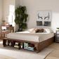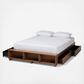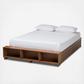 Find a convenient solution to your bedroom storage needs with the Arthur Modern Platform Bed. A wood bench fitted with three shelves lines the front of the frame, perfect for showcasing books or decorations. The bed includes four underside drawers to make this piece especially helpful in rooms with limited space. Assembly is required and a box spring isn’t necessary, as the bed comes with internal slats for mattress support. The clean design of the Arthur is complemented by ash walnut brown finished wood, giving your space a modern, comfortable appeal.