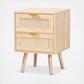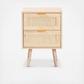 Add a retro inspired accent to your bedroom with the stunning Baird nightstand. The Baird is comprised of sturdy wood showcasing a light oak brown finish. Two drawers and a square tabletop offer plenty of space for all your bedside essentials. Requiring assembly, the nightstand features woven rattan drawer faces and gold tone metal handles for eye catching style. A handy piece brimming with personality, the Baird nightstand is sure to enhance any bedroom.