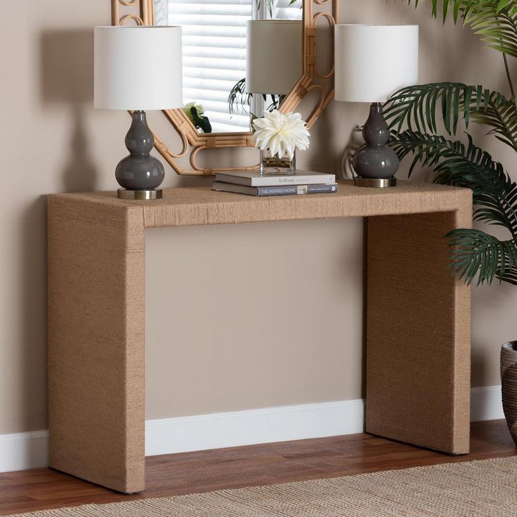 Tranquil, rustic grace arrive to refresh your interior with the stunning Colandra console table. This bohemian piece consists of a sturdy wood frame wrapped in meticulously woven seagrass. Its clean, minimalist silhouette features a rectangular tabletop with crisp geometry that beautifully blends with a variety of room styles. The Colandra will arrive fully assembled and it is recommended to be used with a fitted glass tabletop for proper maintenance. Understated yet exuberant, the Colandra console adds exotic poise to any setting. (Glass tabletop not included).
