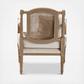 Fit for the home of a French aristocrat, the Clemence French Provincial Upholstered Whitewashed Single Wood Armchair adds elegance to any room. Constructed from solid mahogany wood, the Clemence displays a natural white-washed finish for an antique look. Stunning craftsmanship is shown on the intricately carved frame, as well as the woven rattan back. Designed to add both beauty and comfort to your space, the Clemence is upholstered in an elegant ivory fabric and features thick foam padding on the seat and armrests. A matching accent pillow completes the look.