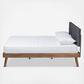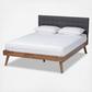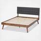 Natural wood tones are paired with grey hues to give the Devan Mid-Century Modern Platform Bed a cool, contemporary look that transforms any bedroom. Constructed from sturdy wood and upholstered in a soft, foam-filled fabric, this bed is designed for comfort and durability. Splayed legs create a cool profile while the button tufting embellishes the headboard. Assembly required.