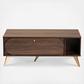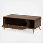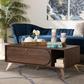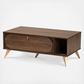 Anchor your living room with the vintage style and convenience of the Edel coffee table. The Edel is comprised of a sturdy wood frame finished in a warm walnut brown. One large drop-down compartment and one open shelf provide storage for all the living room essentials. Gold tone legs lend a subtle touch of glamour, while the large tabletop adds valuable surface area to your home. Requiring assembly, the Edel is fitted with a gold tone knob to complete its chic aesthetic. A unique balance of handy storage and mid-century style, the Edel coffee table is an exceptional addition to any home.